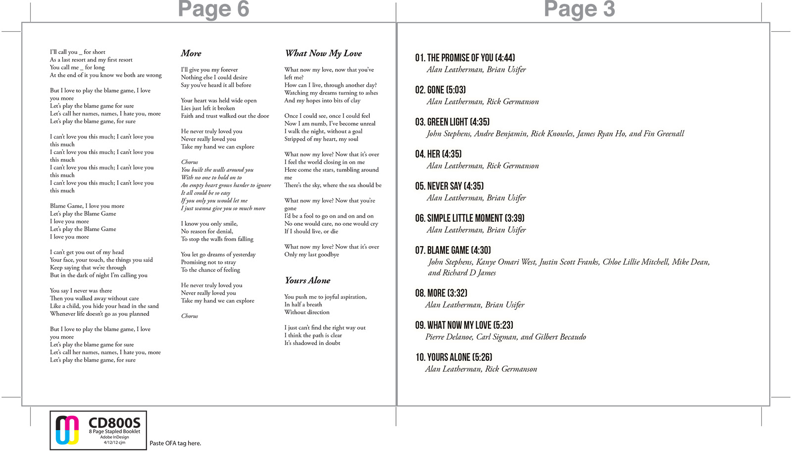 Teamed up with Alan Leatherman for the concept for his latest release (HER). I photographed him in an alley in downtown Manhattan, with natural light. Band photos were created, from screen grabs of video footage that I had recorded during the album recording process, which took place at Sear Sound in New York City. The CD Package included a sleeve and lyric booklet.